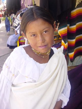 Previous Image Next Image Ecuador (2009) (photo: L. Sanchez) A lovely girl helps her mother to sell merchandise in Ecuador. She actually sold me a pair of alpaca gloves.