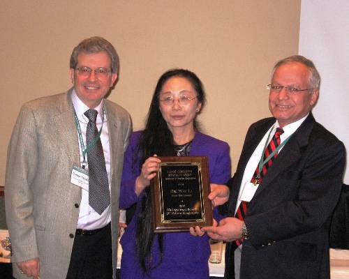Previous Image Next Image 2012 Scholar Award Wei Li receives the scholar award from Stavros Constantinou.